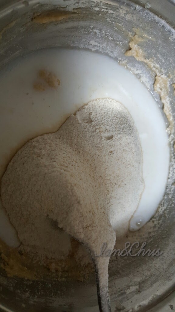 Add the dry ingredients to it in three batches alternating with buttermilk.Fold in well.